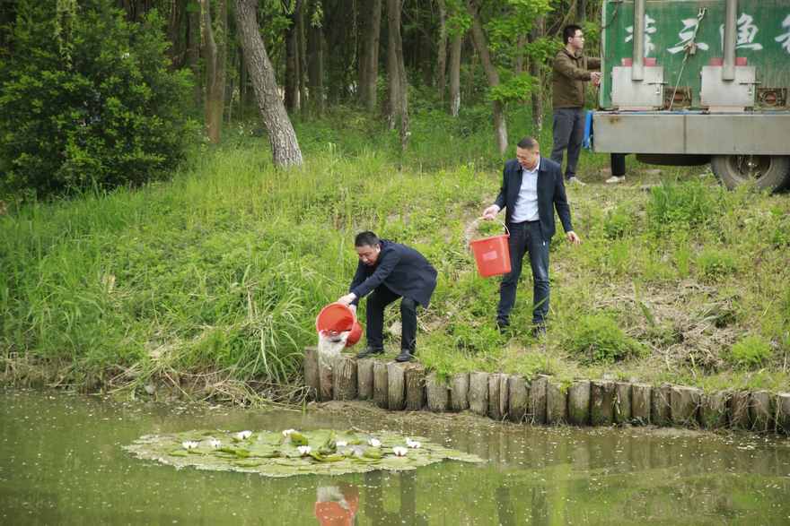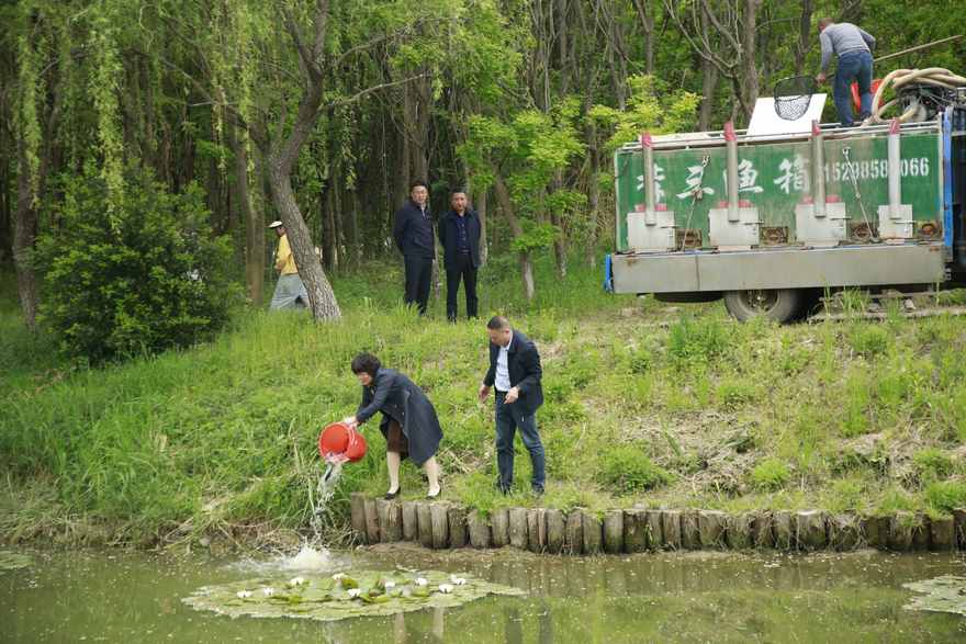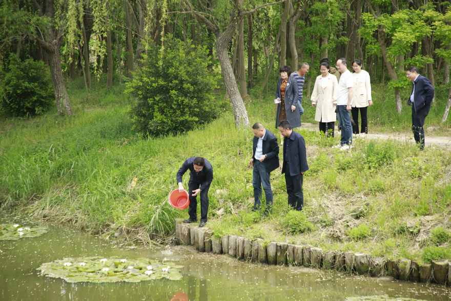 4月27日,盐城水产科学研究院在学院青萝河及荷花池水域开展鱼种生态放养,共计投放白鲢、银鲫等鱼种1000余尾。学校校长、水产院院长孙高明,党委委员王会,副校长束秀玉及宋俊苏等领导亲临现场参与生态放养。