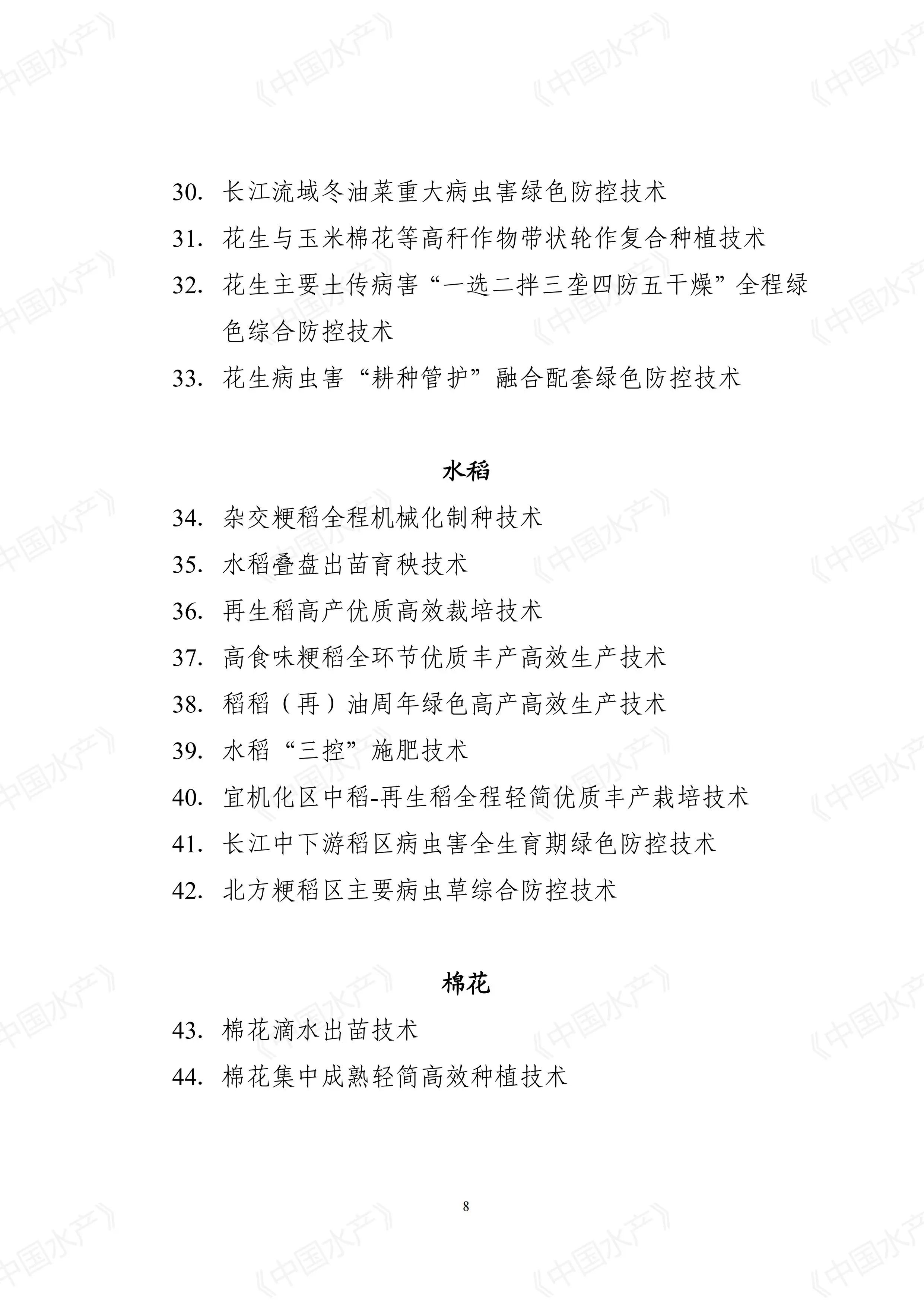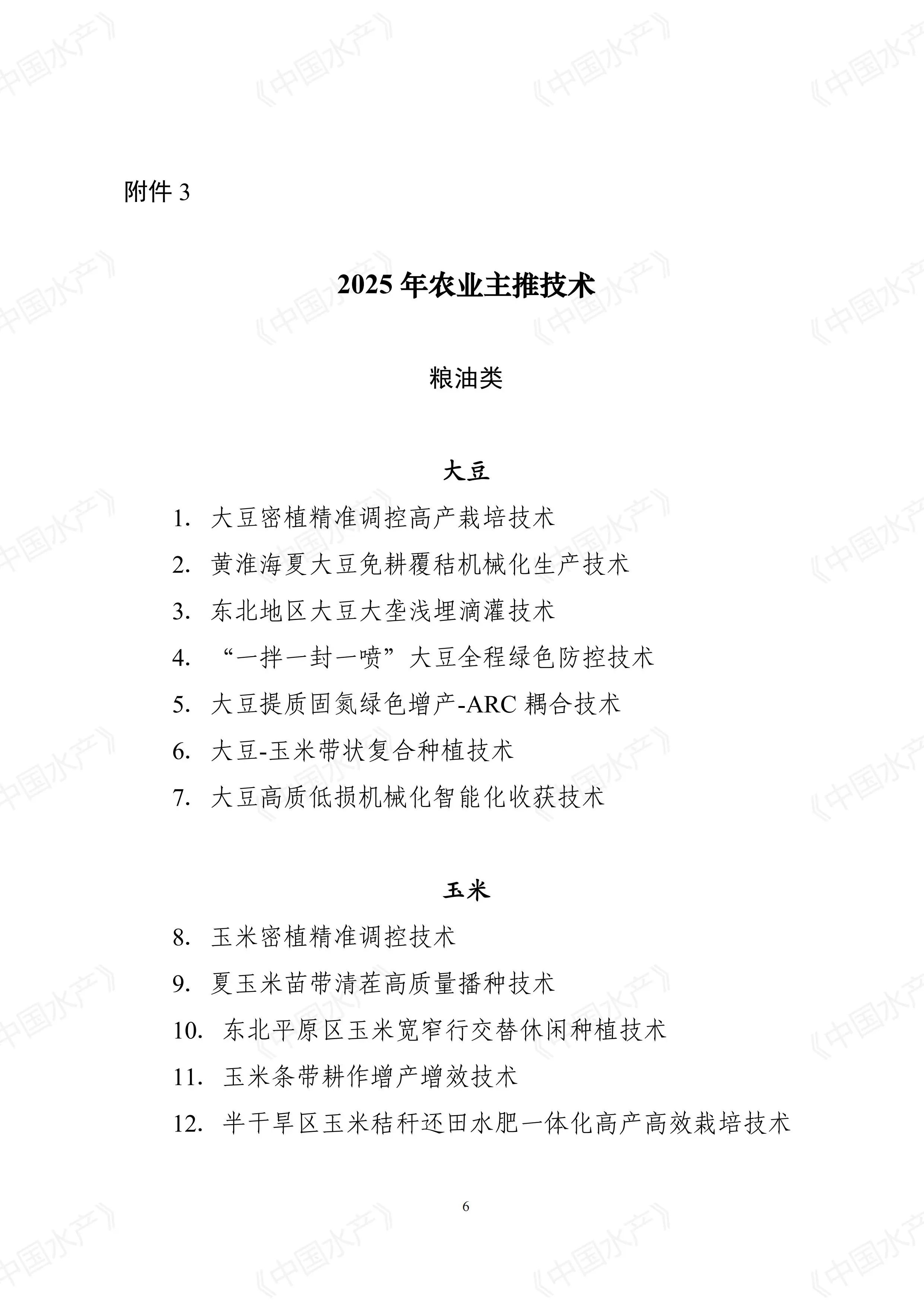 为贯彻落实中央经济工作会议、中央农村工作会议精神和中央一号文件部署要求,加快农业科技成果大面积推广应用,发挥科技对粮食等重要农产品稳产保供的支撑作用,农业农村部组织遴选出2025年农业重大引领性技术10项、主导品种133个、主推技术143项(其中涉渔重大引领性技术1项、主导品种12个、主推技术9项),现予推介发布。各地农业农村部门要切实加大主导品种主推技术推广应用力度,充分发挥现代农业科技试验示范基地的引领带动作用,依托多元农技推广服务体系和现代农业产业技术体系,积极开展主导品种主推技术的集成示范和推广应用,引导带动广大农户和新型农业经营主体应用先进适用技术,不断提高技术到位率,为粮油作物大面积单产提升和多元化食物供给提供坚实科技支撑。