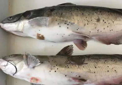 水霉病。发病初期肉眼不易察觉,当肉眼可见时,菌丝已长入肌肉,且蔓延扩展,很快向外长出绒絮状的白色菌丝体,与伤口坏死组织缠绕并黏附在一起,使该患处的肌肉腐烂。病鱼行动缓慢,食量减少,且常浮于水面,最终极度瘦弱至死。此病多发生在水温较低的冬天或早春,体表受伤的鱼极易受水霉菌的寄生。